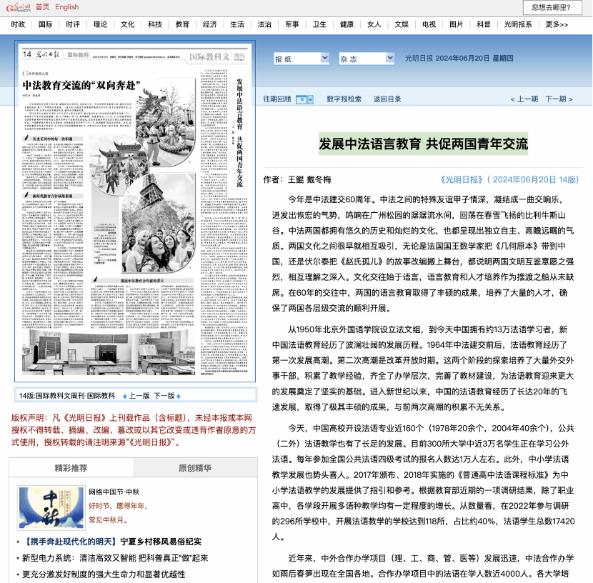 由王鲲、戴冬梅发表在《光明日报》上的文章《发展中法语言教育 共促两国青年交流》获二等奖。