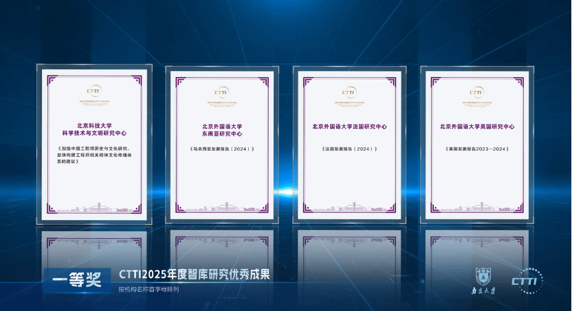 由丁一凡、戴冬梅担任正副主编的《法国发展报告(2024)》获一等奖。此为法国蓝皮书系列连续出版的第7部,也是该系列蓝皮书第3次获得CTTI优秀研究成果奖。