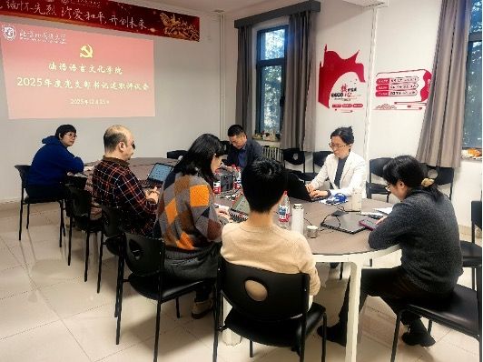 12月23日下午,台湾a片 召开2025年度党支部书记述职评议会。本科生党支部书记朱文珊、研究生党支部书记弓婧绚、教工党支部书记金小燕依次述职,台湾a片 党总支委员会成员出席会议并进行评议,副院长王鲲、组织员马雪琨列席会议。